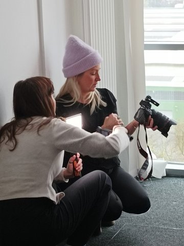 Für die Umsetzung reisten mit Marta Rosellini und Fotografin Valeska Achenburg zwei Expertinnen der Werbeagentur Blaupause KfK GmbH & Co. KG aus Hamburg an. Bereits im Vorfeld wurden bei unserem Kooperationspartner AAWID GmbH in Duisburg Aufnahmen erstellt. Dort standen neben Fotos auch kurze Videointerviews im Fokus: Unter anderem gab mit Mikail Güven, Teilnehmer der "Aktion 100" einen persönlichen Einblick in seine Erfahrungen.